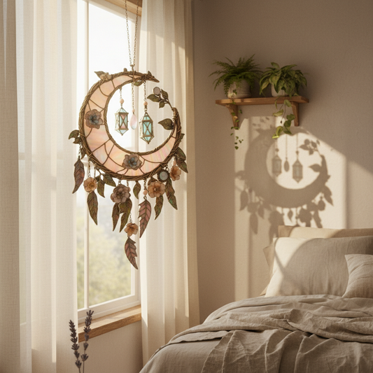 🔥🔥New Year Gift--🌙Hand-Painted Moon and Floral Window Decor💖--2D Acrylic